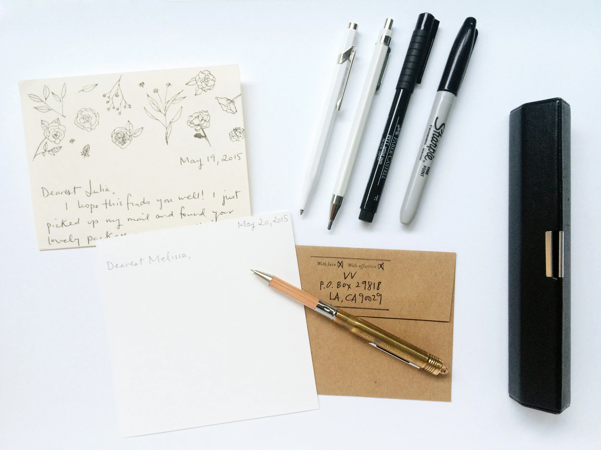 with pen pal club back up and running, margaret and i will each be writing a series of posts related to the art of correspondence. topic no. 1: our favorite writing utensils.