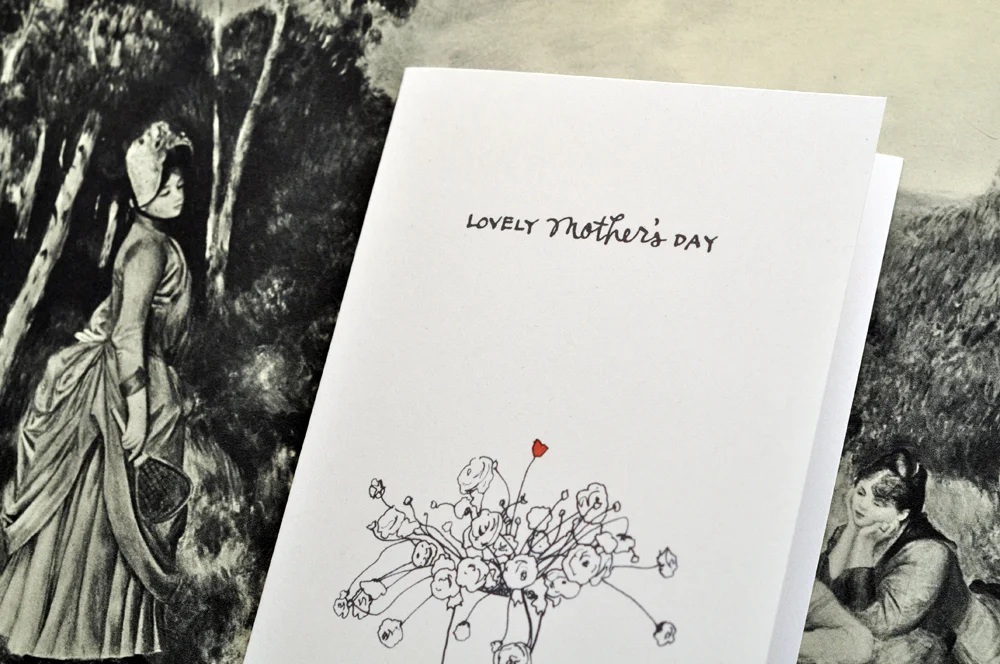 this new card from {paper & type}’s upcoming flower series, no. 2 is available for purchase — along with a pretty envelope — the usual way on etsy, but it’s also available as a free download for my followers (i’ll leave you to find or make your own envelope!). reply via tumblr, or write me at hello@paperandtype.com, with subject line ‘mama’, & a note about anything*, really. i’ll send you off with a handy PDF to print at your own convenience (such as the hour before you head to brunch).